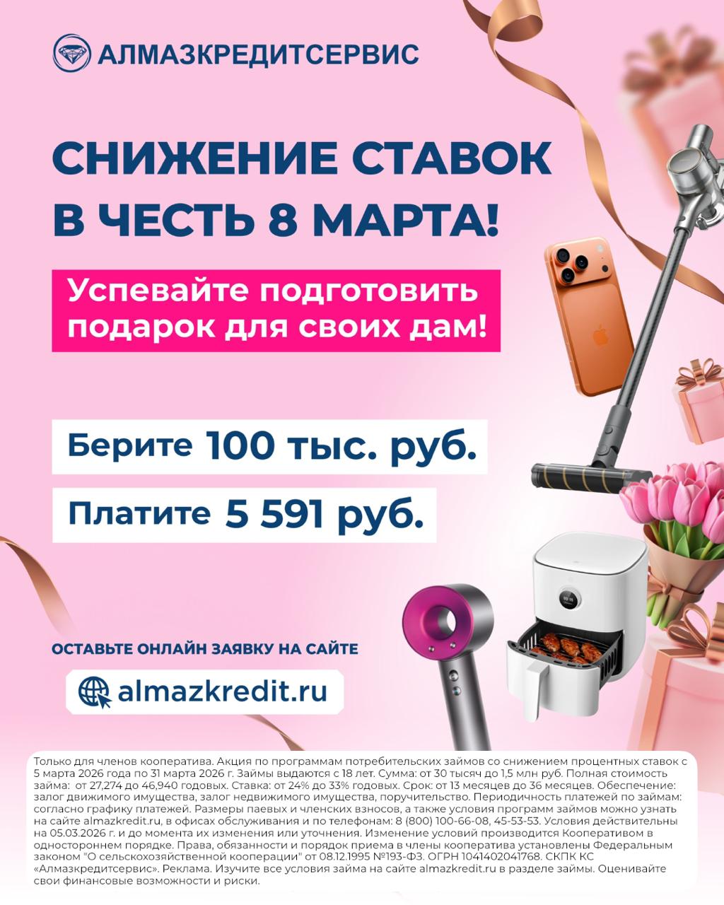 Снижение ставок в честь 8 марта!