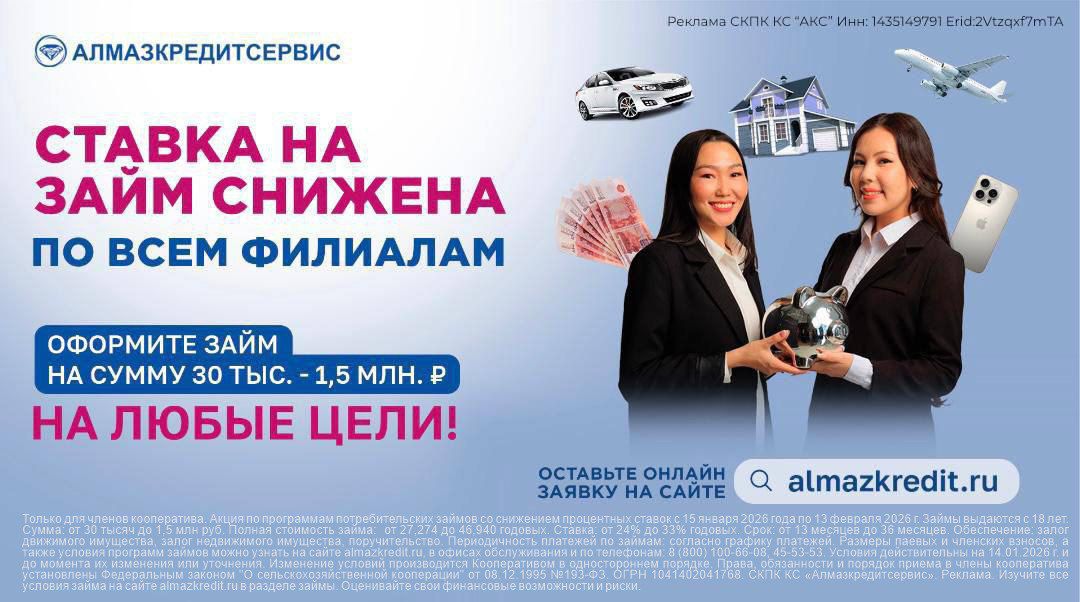 СНИЖЕНИЕ СТАВОК на все программы займов во всех улусных филиалах «Алмазкредитсервис»